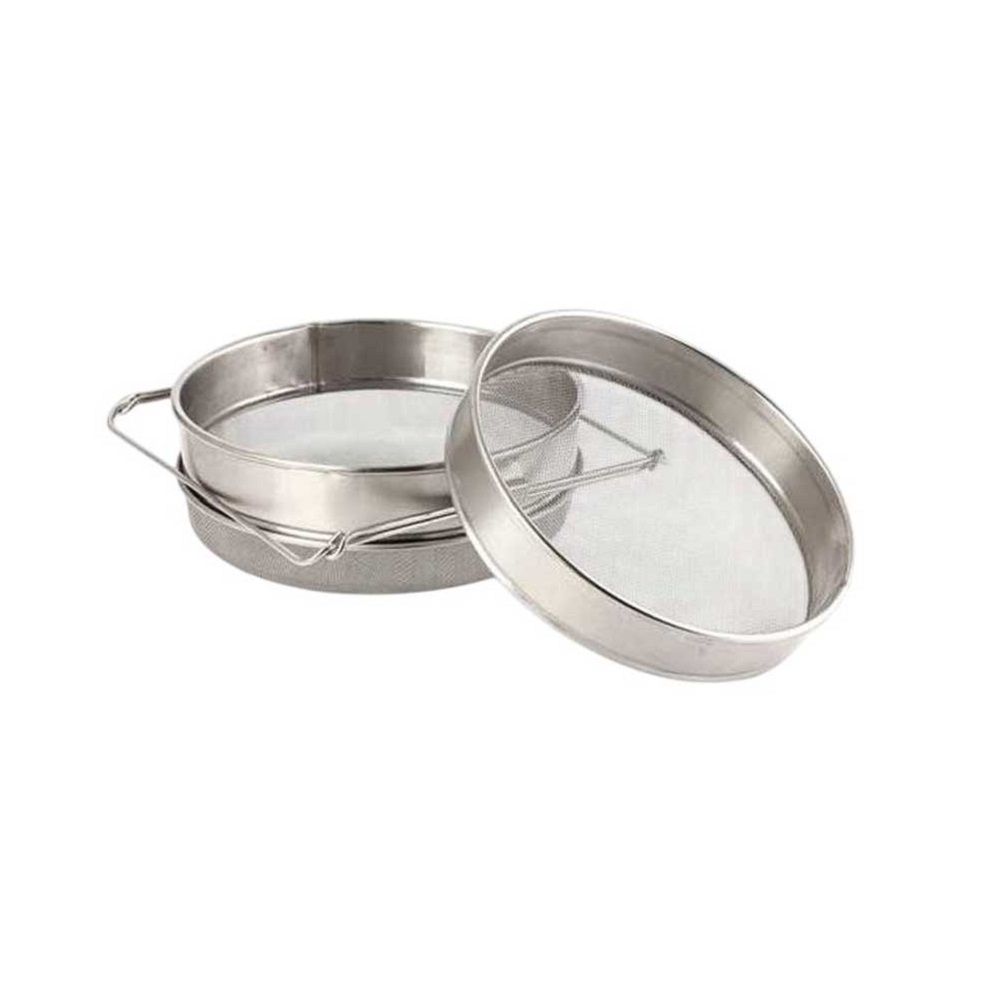 Duplo cjedilo Inox za grubo cijeđenje i fino filtriranje meda osigurava uklanjanje nečistoća poput voska i ostataka pčela. Ovo cjedilo idealno je za pčelare koji žele kristalno čist med bez nečistoća. Postavite ga direktno na posudu i osigurajte kvalitetnu filtraciju prilikom vrcanja. Izrađeno od nehrđajućeg čelika (inox) s pocinčanom mrežom, cjedilo je otporno na koroziju i dugotrajno. Zahvaljujući nosačima na razvlačenje, ono se lako prilagođava različitim posudama za prihvat meda.